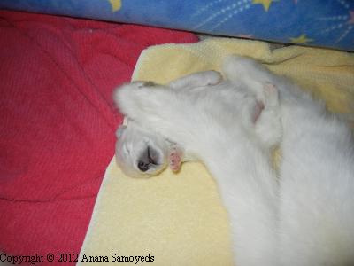 | Chardonnay happily sleeping on her back.