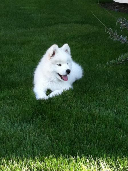 | Tank lounging in his new yard.