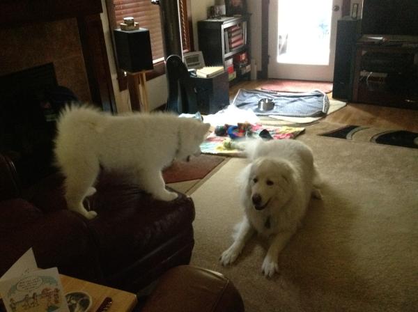 | Tank and his Great Pyr sister Gracie.