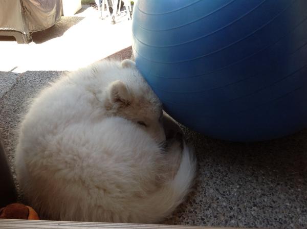 | Resting after a hard workout with the exersize ball!